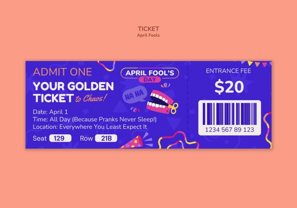 愚人节活动入场券PSD模板适用于愚人节活动入场券设计