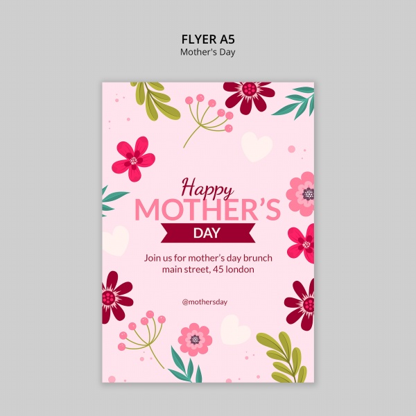 粉色风格母亲节快乐主题传单模板A5适用于母亲节传单设计