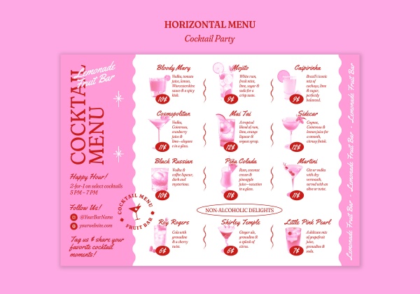 粉色风格派对饮品价目表PSD模板适用于饮品价目表设计
