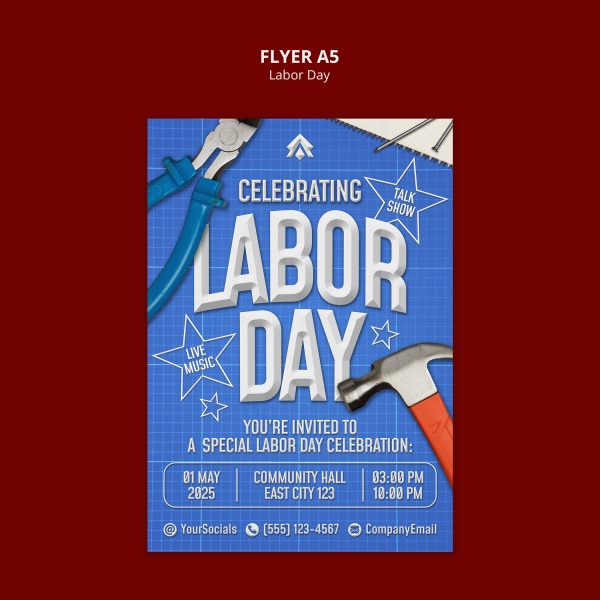 劳动节主题宣传单A5模板设计适用于劳动节传单设计