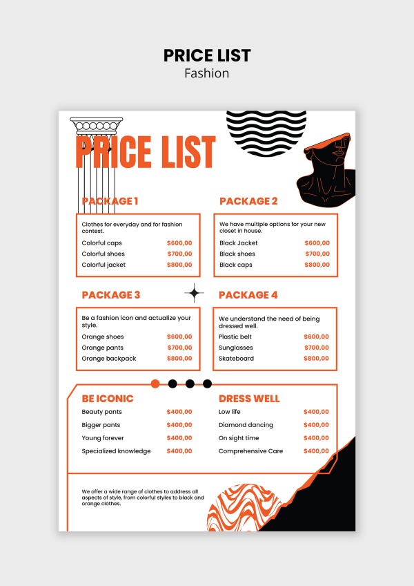 时尚单品服饰价目表PS素材适用于时尚单品价目表设计