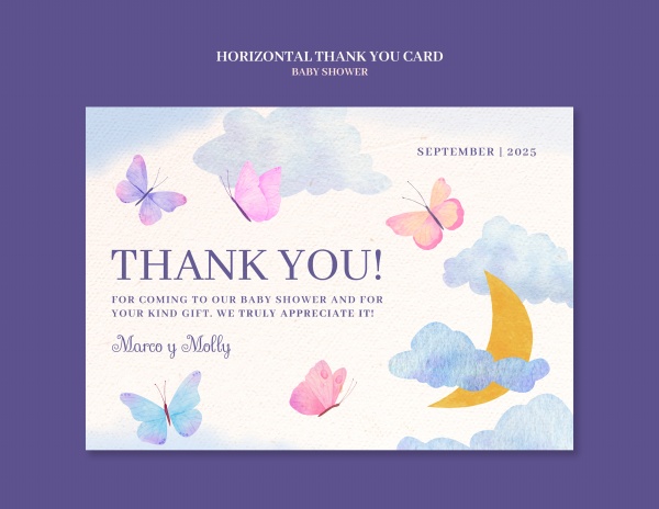 水彩蝴蝶风格宝宝活动秀卡片设计素材适用于宝宝活动秀卡片设计