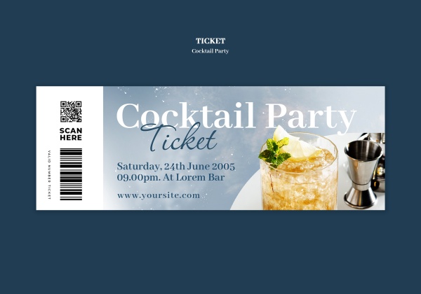 鸡尾酒派对活动入场券PSD模板适用于鸡尾酒活动入场券设计