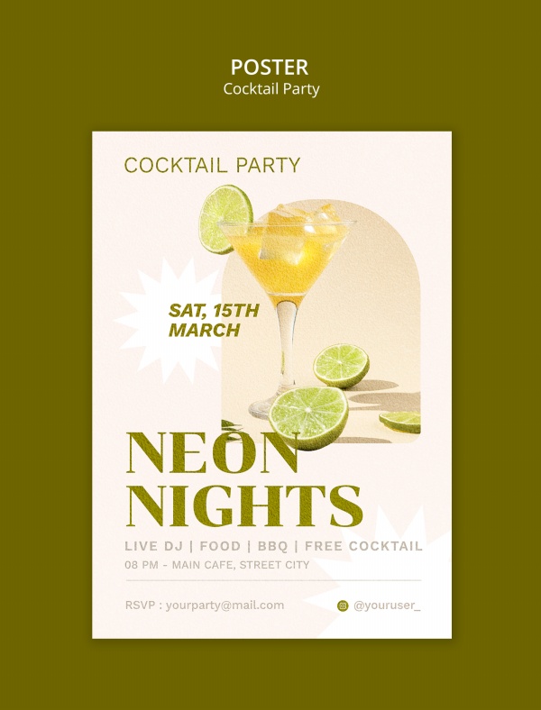 鸡尾酒派对宣传海报PSD素材适用于鸡尾酒海报模板设计
