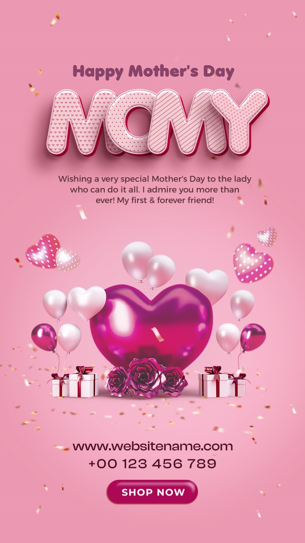 粉色风格母亲节竖版海报PSD模板适用于母亲节海报模板设计