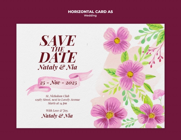 水彩绘风格花卉主题婚礼邀请卡模板适用于婚礼邀请卡模板设计
