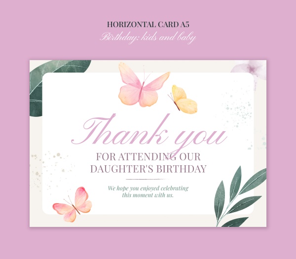 儿童生日水彩蝴蝶风格感谢卡素材适用于儿童生日感谢卡设计