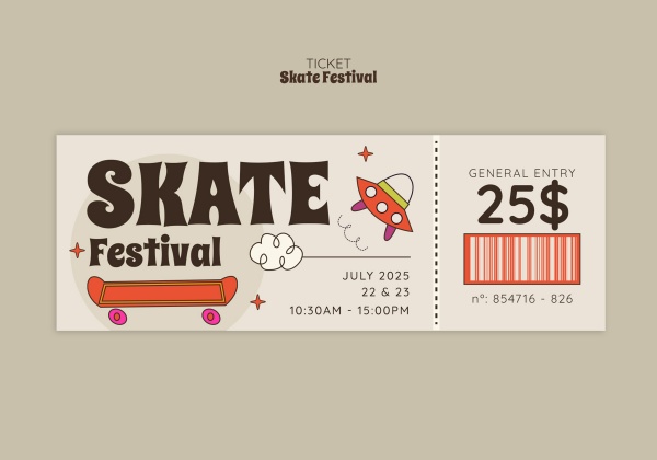 本作品提供滑板运动活动优惠券模板设计的图片会员免费下载,格式为PSD,文件大小为551KB;