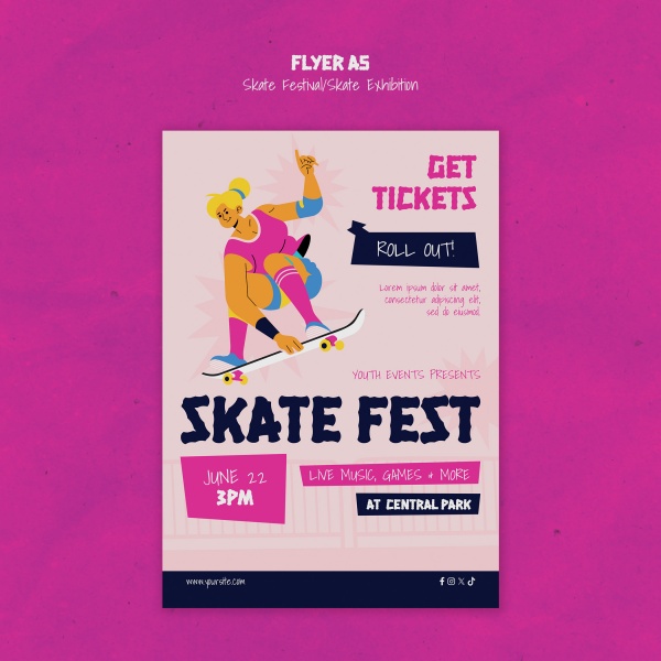 滑板运动活动宣传单页A5模板适用于滑板运动宣传单页设计