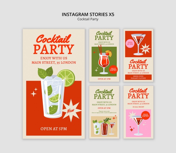 INS风格鸡尾酒派对X5模板设计适用于鸡尾酒派对模板设计