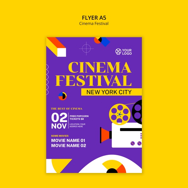 卡通插画风格电影节传单A5模板适用于电影节传单模板设计