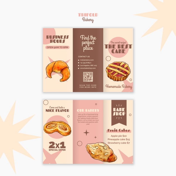 手绘插画风格面包店宣传折页模板适用于面包店宣传页设计