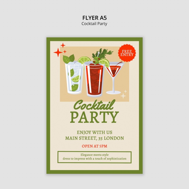 卡通插画风格鸡尾酒派对A5传单适用于鸡尾酒派对传单设计