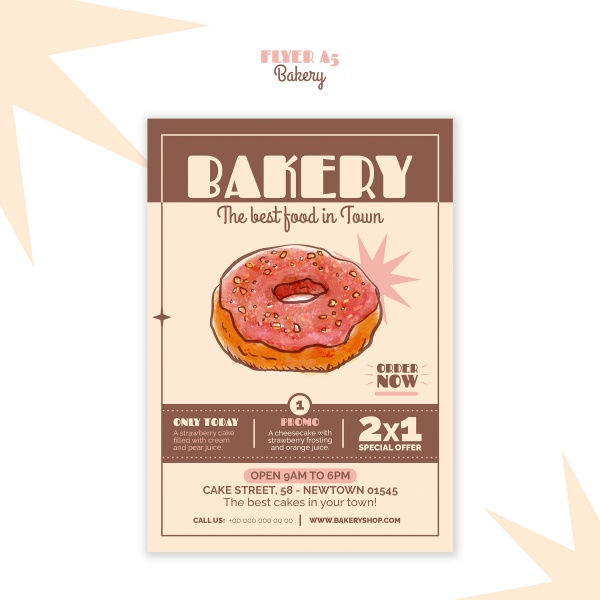 面包店手绘插画风格宣传单页A5模板适用于面包店宣传单设计
