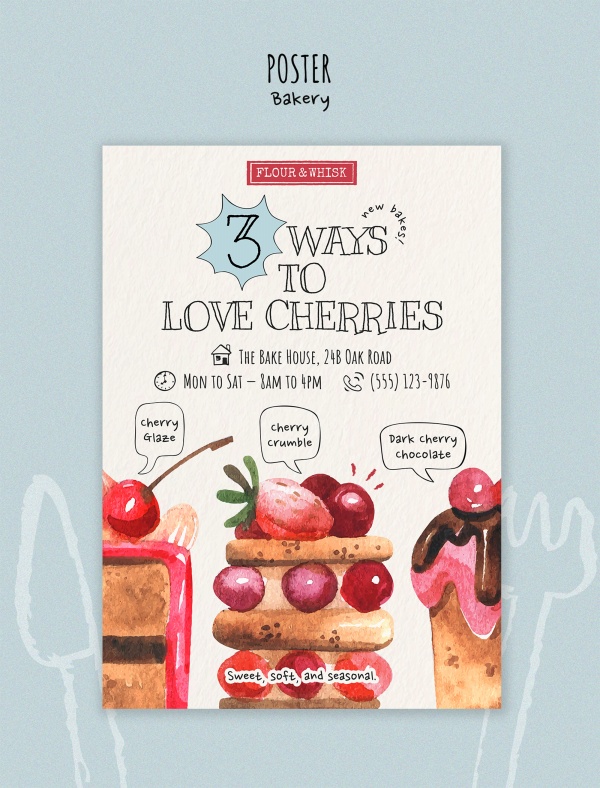 手绘面包海报PSD源文件设计适用于面包海报模板设计