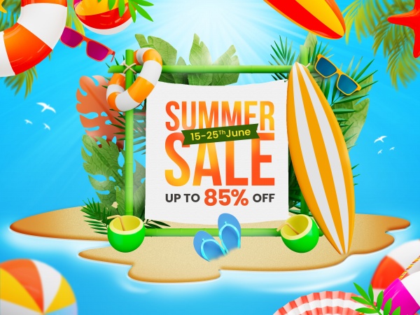夏日促销折扣PSD分层素材适用于夏日主题促销设计