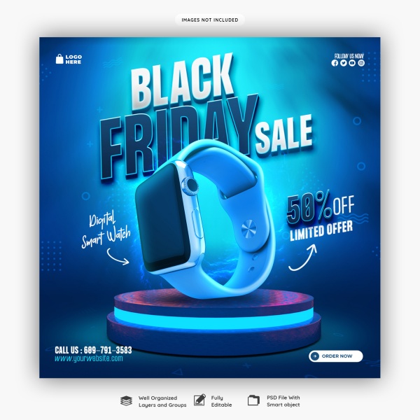 黑色星期五运动手表折扣主图设计适用于黑色星期五产品主图设计