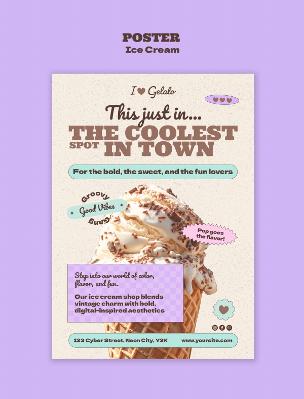 美味冰激凌宣传海报PSD模板适用于冰激凌海报模板设计