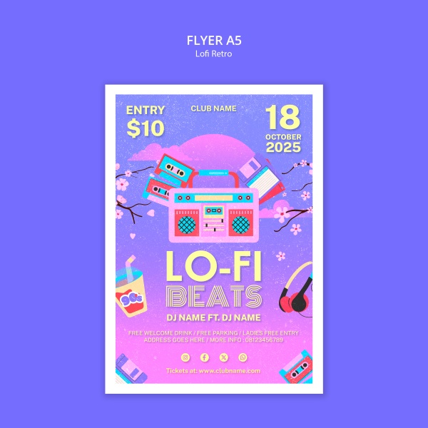 低保真复古风格收音机传单设计适用于收音机传单模板设计