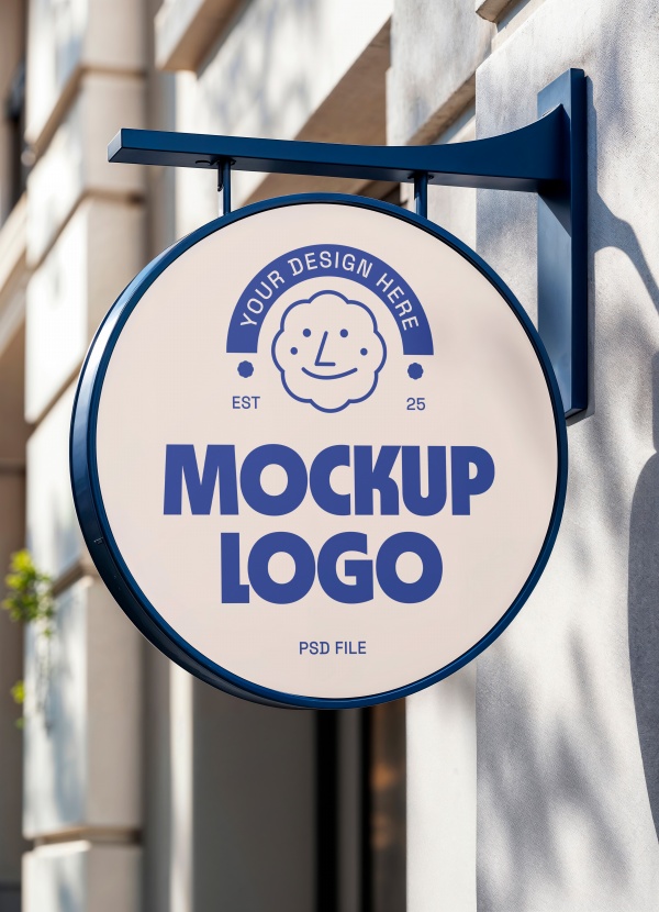圆形店招LOGO展示样机设计适用于店招LOGO样机展示设计