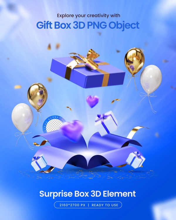 3D立体风格礼盒元素PSD分层素材适用于3D礼盒元素设计