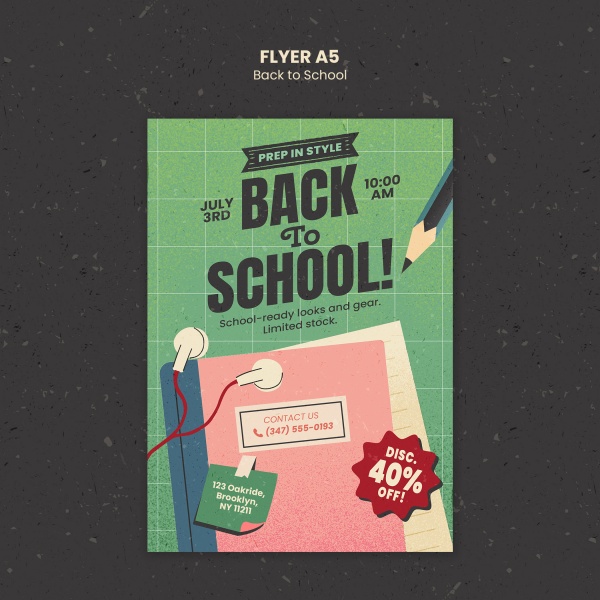 开学返校季折扣传单A5模板适用于开学季折扣传单设计
