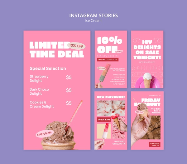 粉色风格冰激凌INS宣传模板设计适用于冰激凌INS模板设计