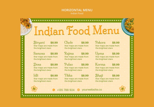 印度美食菜单价目表ps素材适用于印度美食价目表设计