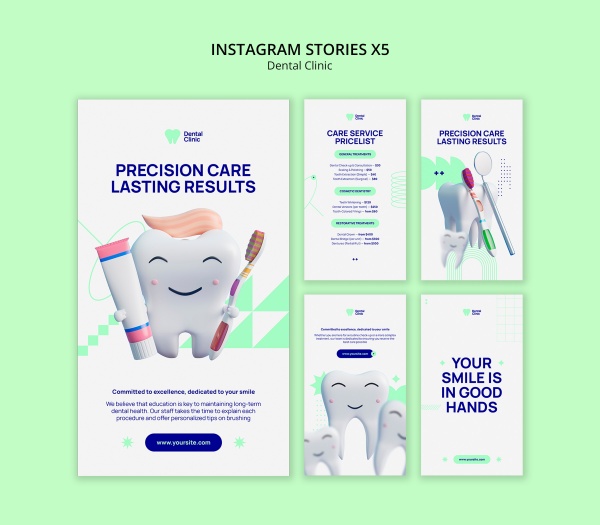 INS风格牙科诊所宣传X5模板设计适用于牙科诊所INS模板设计