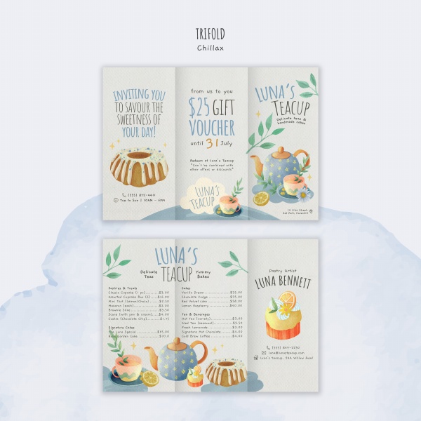 清新手绘风格下午茶宣传折页模板适用于下午茶宣传折页设计
