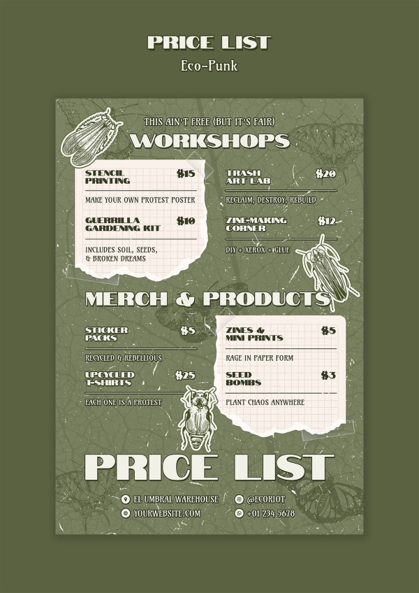 朋克风环保宣传价目表清单设计适用于环保宣传价目表设计