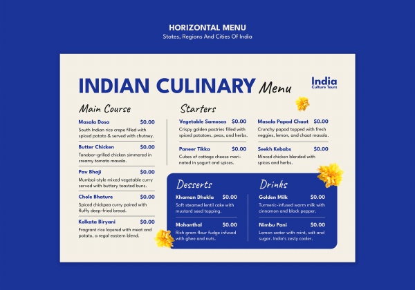 印度美食菜单价目表ps素材适用于印度美食菜单设计