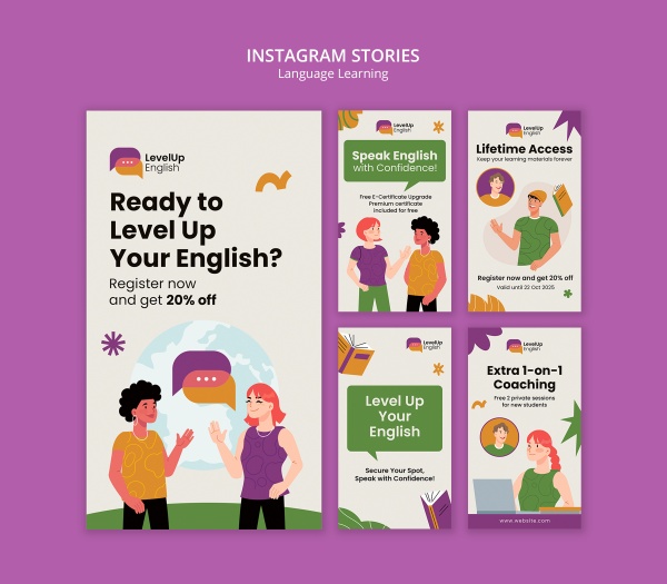 语言学习宣传INS模板设计适用于语言学习INS模板设计