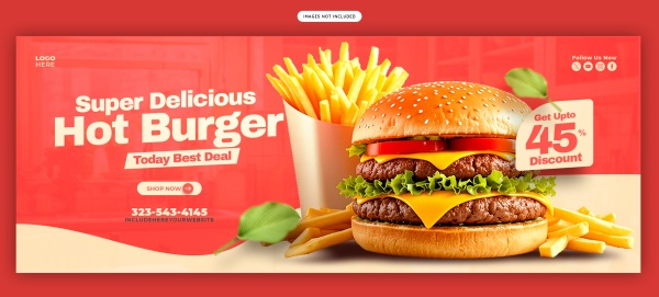 汉堡薯条折扣横幅banner设计适用于汉堡薯条横幅设计
