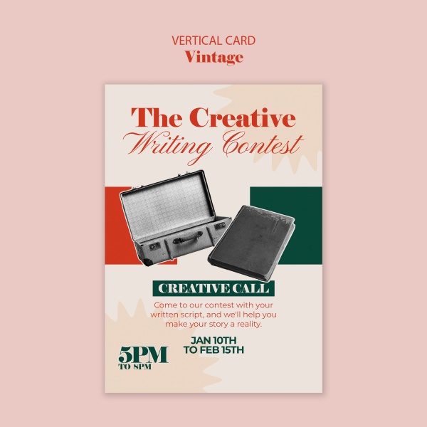 本作品提供创意写作比赛宣传卡片设计的图片会员免费下载,格式为PSD,文件大小为13.6M;