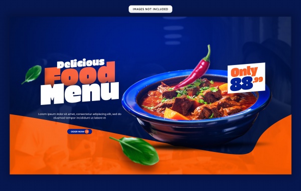 美味餐饮食物横幅设计PS素材适用于餐饮美食横幅设计