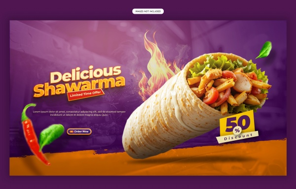 美味鸡肉卷快餐美食特价横幅设计适用于鸡肉卷美食横幅设计
