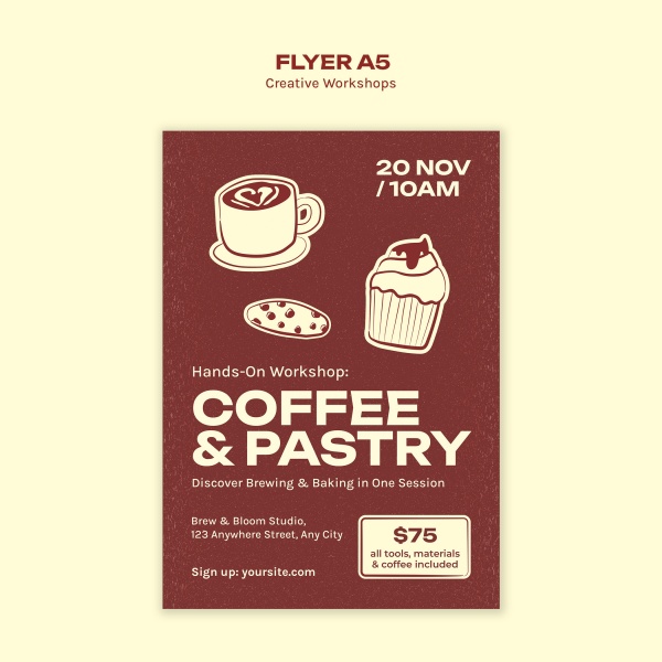 创意咖啡糕点宣传单页A5模板适用于糕点美食传单设计