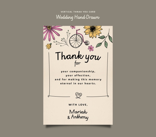 手绘花卉风格婚礼感谢卡设计适用于婚礼感谢卡设计