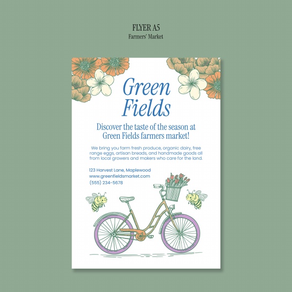 手绘风格绿色农场宣传单页A5模板设计适用于农场宣传单页设计