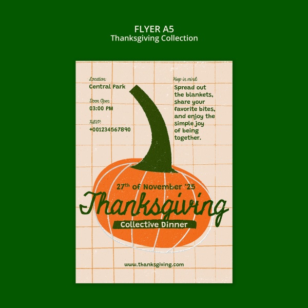 感恩节手绘南瓜主题传单设计适用于感恩节传单模板设计
