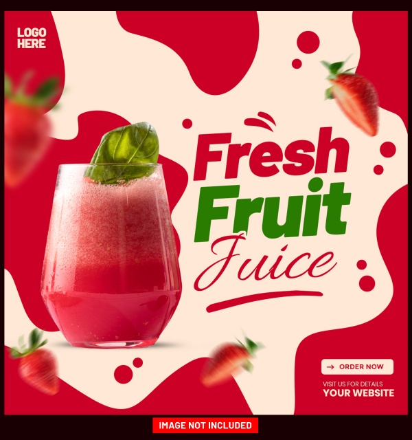 美味草莓果汁饮品方形海报设计适用于草莓果汁海报设计