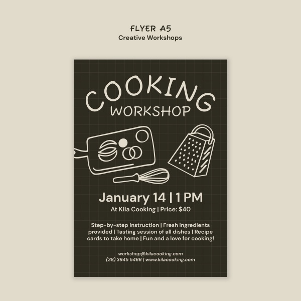 创意美食工坊手绘风格传单A5模板设计适用于创意美食工坊宣传单设计