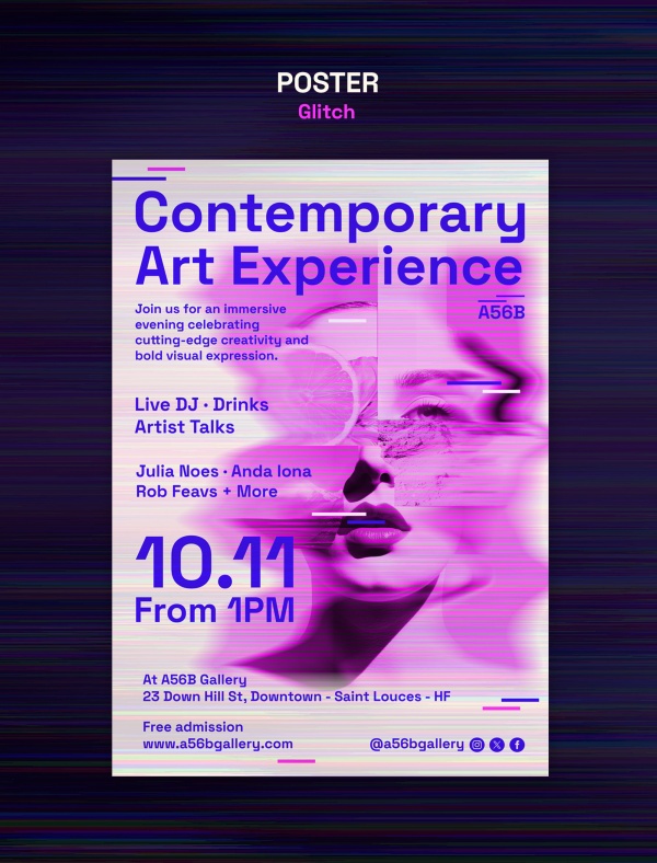 紫色毛刺风格海报PSD源文件设计适用于毛刺风格海报设计