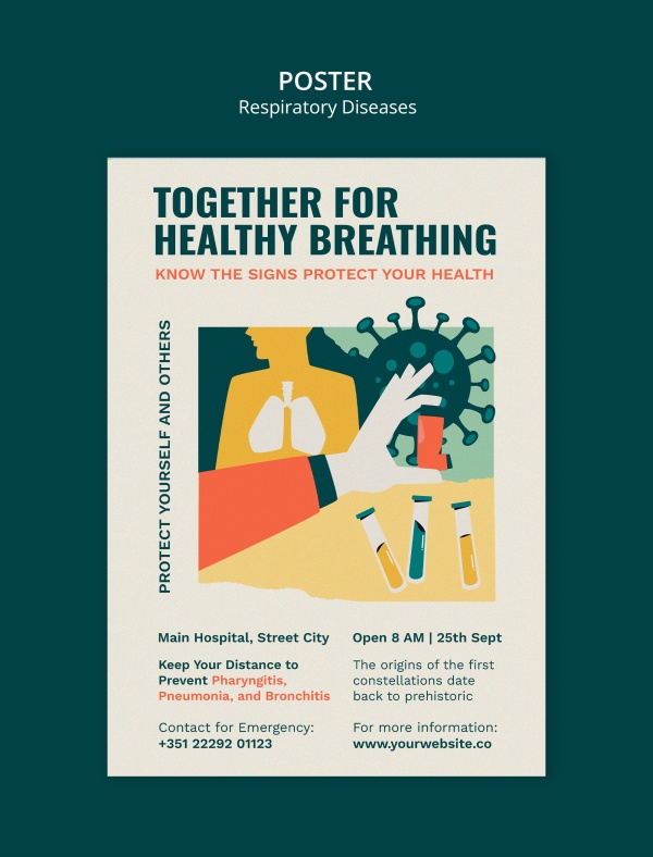 呼吸系统疾病宣传海报PSD素材适用于呼吸系统疾病宣传海报设计