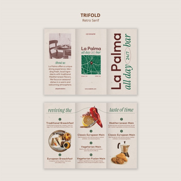 复古风格餐饮宣传三折页PSD模板适用于餐饮宣传折页设计