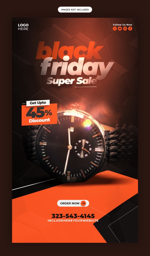 黑色星期五时尚腕表折扣海报设计适用于黑色星期五腕表海报设计
