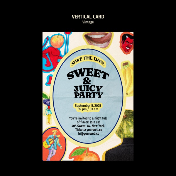 甜蜜多汁派对卡设计素材适用于派对卡片设计