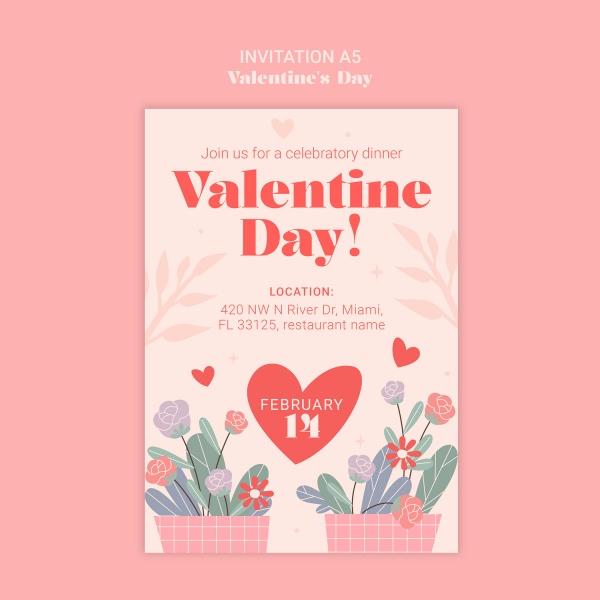 粉色情人节邀请模板A5适用于情人节活动邀请模板设计