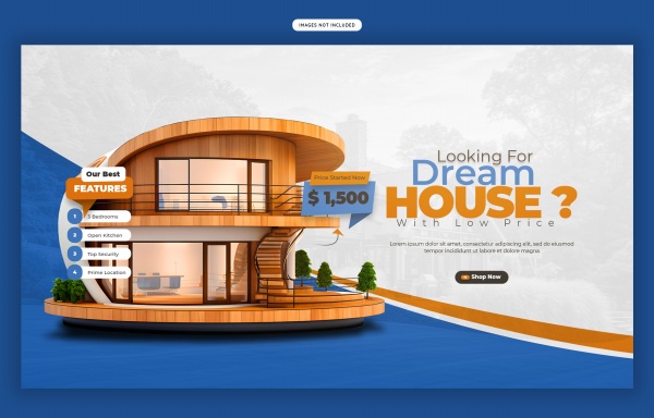 梦想中的房子主题横幅PSD素材适用于房地产主题横幅设计